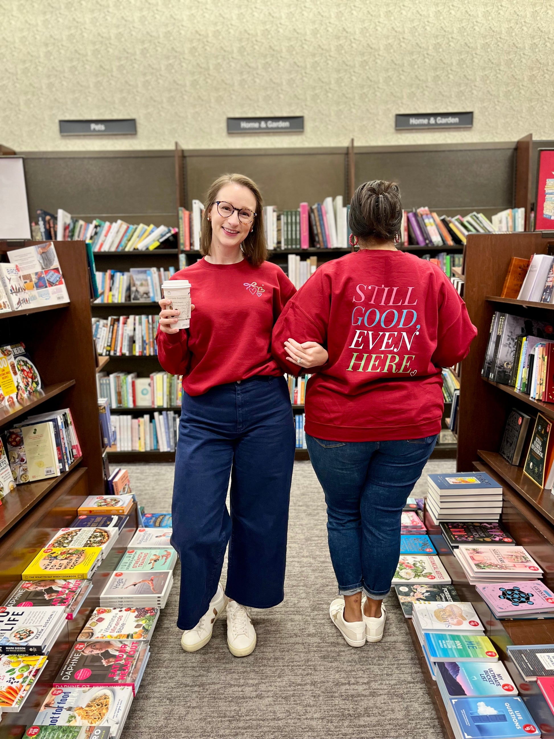 Cozy up in our Galentines Sweatshirt! Front detail includes the Still Good tri-color ribbon and one heart in each color. The tri-color Still Good Co. ribbon represents the colors for metastatic breast cancer: pink, teal, and green. Let's help the world understand that we are more than pink! Our diagnosis does not define us.